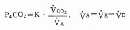(一)肺泡通气不足 前已提及,肺泡通气量是真正进行气体交换的有效气量。它是分钟通气量及死腔通气量的差值。因呼吸中枢的调节功能,每分钟CO2产量一般变化不大,除非患者的通气已经机械通气机完全控制,而又因某些因素如静脉营养使呼吸交换指数R不足一般0.8时,