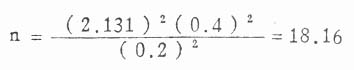 我们运用前面学过的某些假设检验公式,就可以进行样本含量的计算。下面仅举两例略作介绍。这里的公式仅适用于α=0.05,1—β=0.50。而且都是双侧检验。