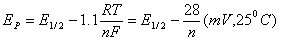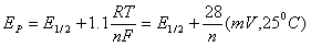 峰电流ip与被测物质浓度的关系,对可逆波为: