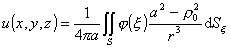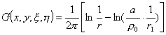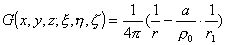2°  对于球体(球心为O,半径为a),u=0的基本解为rP(x,y,z)与参变点的距离,作M关于球面的反演点M1,记r1M1P的距离,则格林函数为