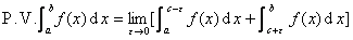 [柯西主值] 有时极限(1)不存在,但如果设ε'=ε→0,这个极限(1)存在,就称它为瑕积分