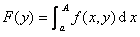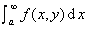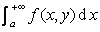 2° 外尔斯特拉斯判别法 设函数f(x,y)(x的函数)在任一有限区间[a,A]上可积,若存在与参数y无关的函数F(x),它在区间[a,∞)上可积,并且对于区间(y1,y2)内的一切y