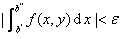 在区间(y1,y2)内一致收敛的充分必要条件是:对任意ε>0,都存在正数B=B(ε),使得当b'>B,b''>B时,对区间(y1,y2)内的一切y,都有