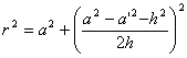 r为球半径,a为拱底圆半径,h为拱高