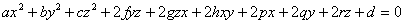 上面所列举的椭球面、双曲面、抛物面等,它们的方程关于x,y,z都是二次的.关于x,y,z的一般二次方程的形式是