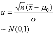 已知总体方差,检验总体的均值是否等于(或小于或大于)已知常数