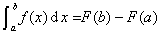 [牛顿-莱布尼茨公式] 若函数f(x)在区间[a,b]上连续,或分段连续,则f(x)[a,b]上有原函数,设F(x)f(x)[a,b]上的一个原函数,则