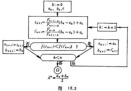 If you want to limit the number of tests on the definition interval of the function to find the optimal point, you can divide the interval into equal parts, take the first test point at , and use the method of finding a symmetrical point ( symmetrical about the midpoint of the interval ) for subsequent test points ( Figure 18. 1) , a total of tests were done,