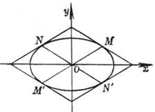 where a is the angle between the tangent of the point M ( x , y ) and the main axis, and n is the length of the normal MN . In particular, the radius of curvature of the vertex R 0 = p