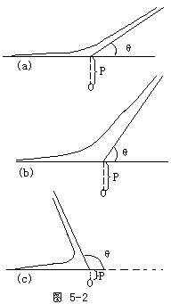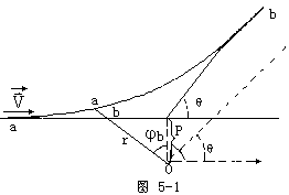 式中Ma粒子的质量,重金属原子核的质量和a粒子的质量相比较,可以看作是无穷大。由上式可知,“瞄准”距离P愈小,偏转角θ愈大。对于不同的“瞄准”距离,a粒子的轨道形状可有如图5-2所示