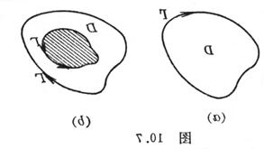 3 o If the function is resolved in a simply connected region , continuous over the package * of , then the integral along the region boundary is equal to zero (Fig. 10.7 ( a )), i.e.