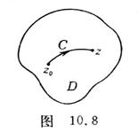 According to Cauchy's theorem, the integral of an analytic function in a simply connected region along any piece-wise smooth curve in the region is only related to the two endpoints of the curve and has nothing to do with the route of the integral (Figure 10.8 ), so it can be written as