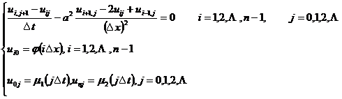代替,此时如已知前juij的值,为求第j+1排的ui,j+1 必须解包含n1个未知量的线性代数方程组,这种差分方程称为隐式格式的差分方程,前面所提的差分方程称为显式格式差分方程.