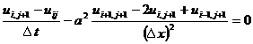 与上段一样,利用和在第0排及第1排的已知数值(初始条件)ui0 , ui1可计算ui2,然后用已知的ui1 , ui2可计算ui3,类似地可确定一切节点上的uij.