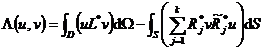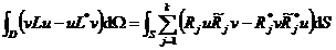式中(u,v)是一个D上的积分,其被积函数包含u,vk阶导数;Rj是定义在边界S上的两个线性微分算子.再将(u,v)分部积分k次得