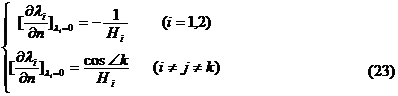 Using formula ( 23 ) to find the outer normal derivative of the edge , we can get