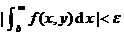 [ Consistent convergence ] Let the function f ( x , y ) be a continuous function defined in the region R ( a ≤ x < ∞ , y 1 < y < y 2 ) , if for any given ε > 0 , there exists A positive number B = B ( ε ) only related to ε , so that when b ≥ B , for all y inequalities in the interval ( y 1 , y 2 )