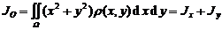 [ Moment of inertia of thin plate ] Let the density of thin plate Ω in the Oxy plane be ρ = ρ ( x,y ) , for the x - axis and y -axis, the moment of inertia of the origin O is respectively , then![]()