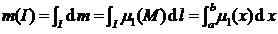 [ Linear density and single integral on a straight line ]  Let σ = I = [ a, b ], then the mass of the non-uniform thin rod