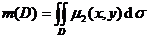 The mass of the [ area density on the surface and the integral with respect to the surface elements ]   distributed on the surface S is