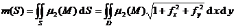 where D is the projected area of ​​S on the Oxy plane, and the equation of S is z = f ( x ,y ), x,yD . The integral of this form is called the integral of the function ( M ) with respect to the surface element d S .